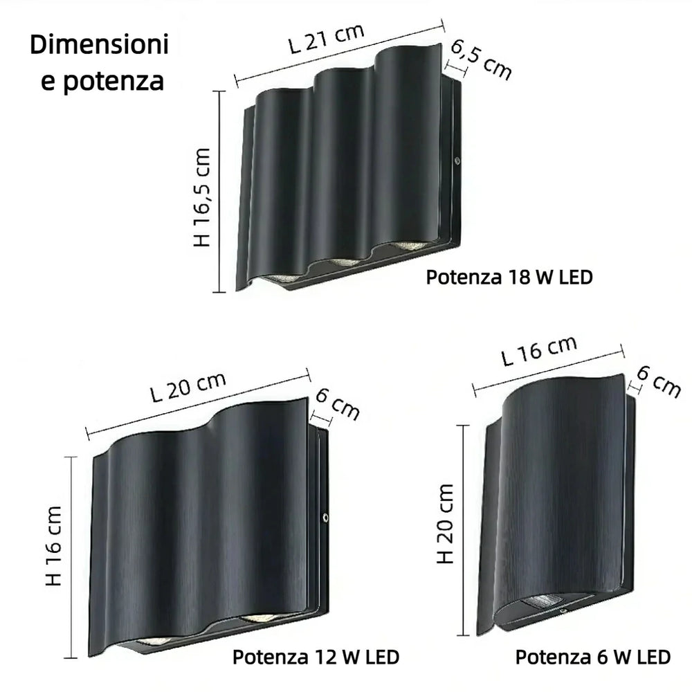 La applique da esterno up down crea un raffinato effetto a fasci di luce verso l’alto e verso il basso, valorizzando pareti, ingressi e spazi in giardino. Realizzata in metallo pressofuso monoblocco, è una solida applique da esterno LED a parete con diffusore in vetro spesso per una luce uniforme e protetta. Progettata come applique da esterno IP65, resiste ad acqua e agenti atmosferici. Parte delle lampade da parete dal design moderno, garantisce installazione semplice e lunga durata.