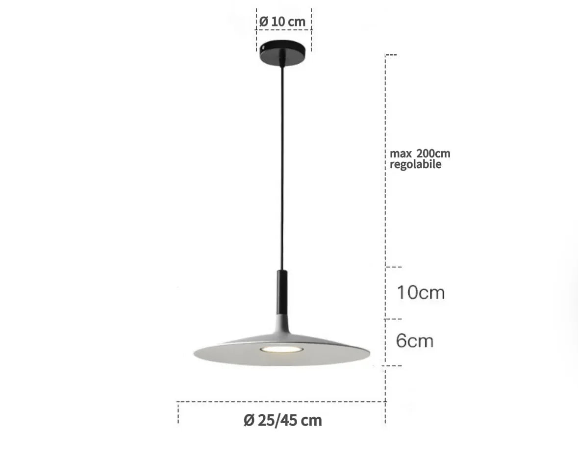 Ispirato a un disco, questo lampadario moderno fonde perfetta mente design moderno e funzionalità pratica, rendendolo la scelta ideale per la vostra sala da pranzo. Realizzato in metallo di alta qualità e rifinito con una vernice multistrato, è resistente alla ruggine e offre una lunga durata. La sua forma elegante e unica aggiunge un tocco contemporaneo al vostro spazio.