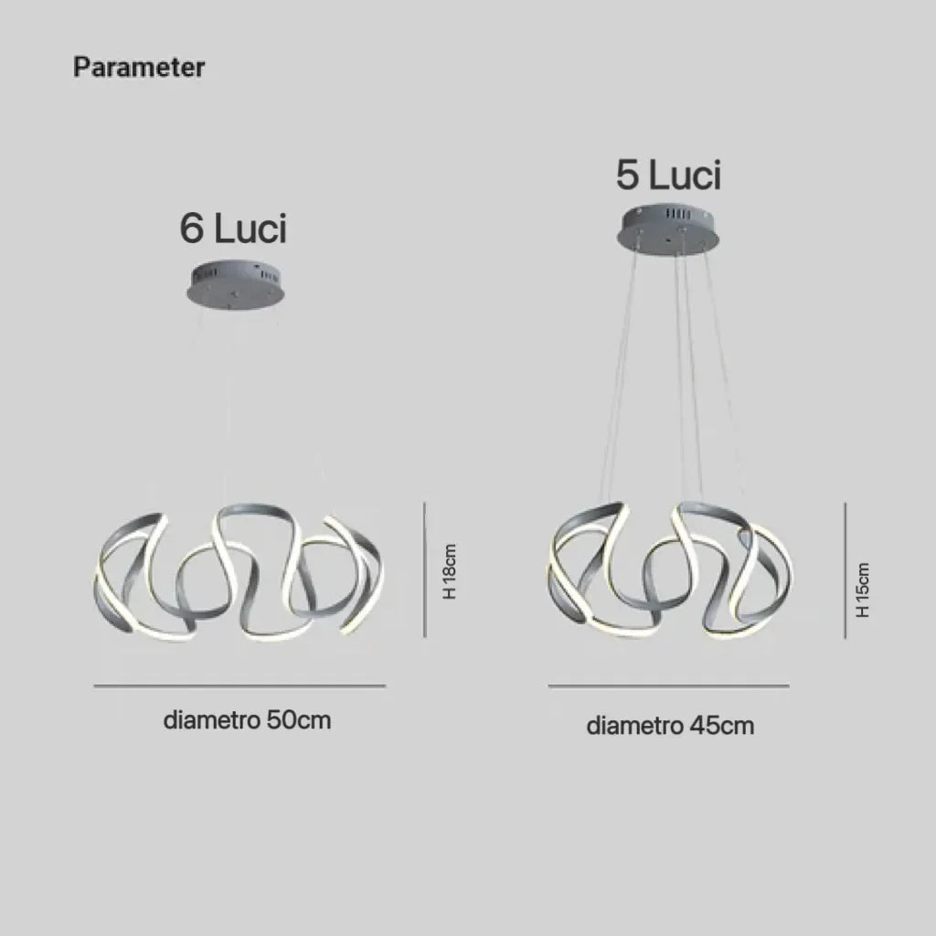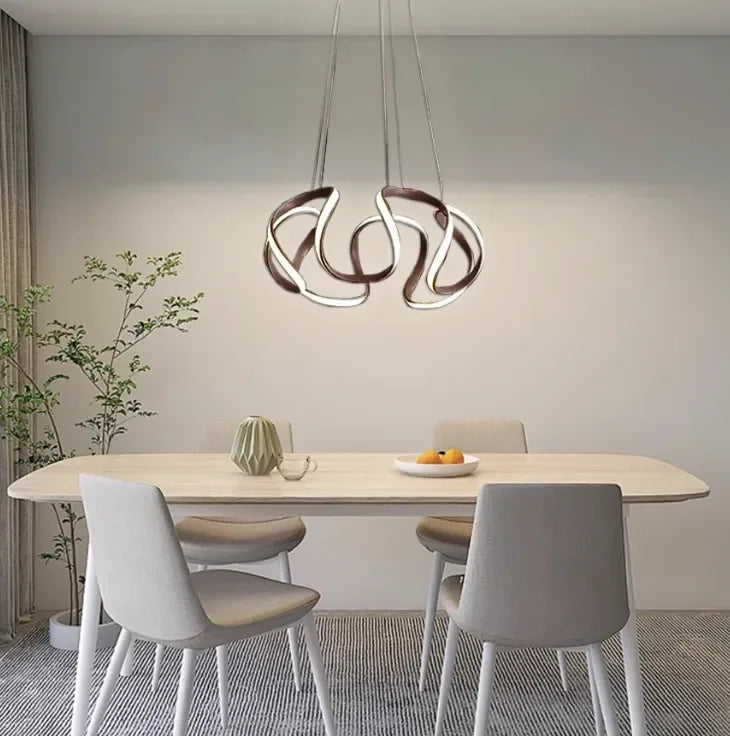Questa lampada a sospensione in stile moderno trae ispirazione dal design a onda, risultando particolarmente creativa. La temperatura del colore e la luminosità sono regolabili, adattandosi alle diverse esigenze di illuminazione. Questo apparecchio LED è energetico e protettivo per gli occhi, con un'alta resa cromatica, realizzato con metallo e silicone di alta qualità. Il suo design elegante e l'effetto di diffusione della luce morbida rendono il tuo sala da pranzo più artistico .