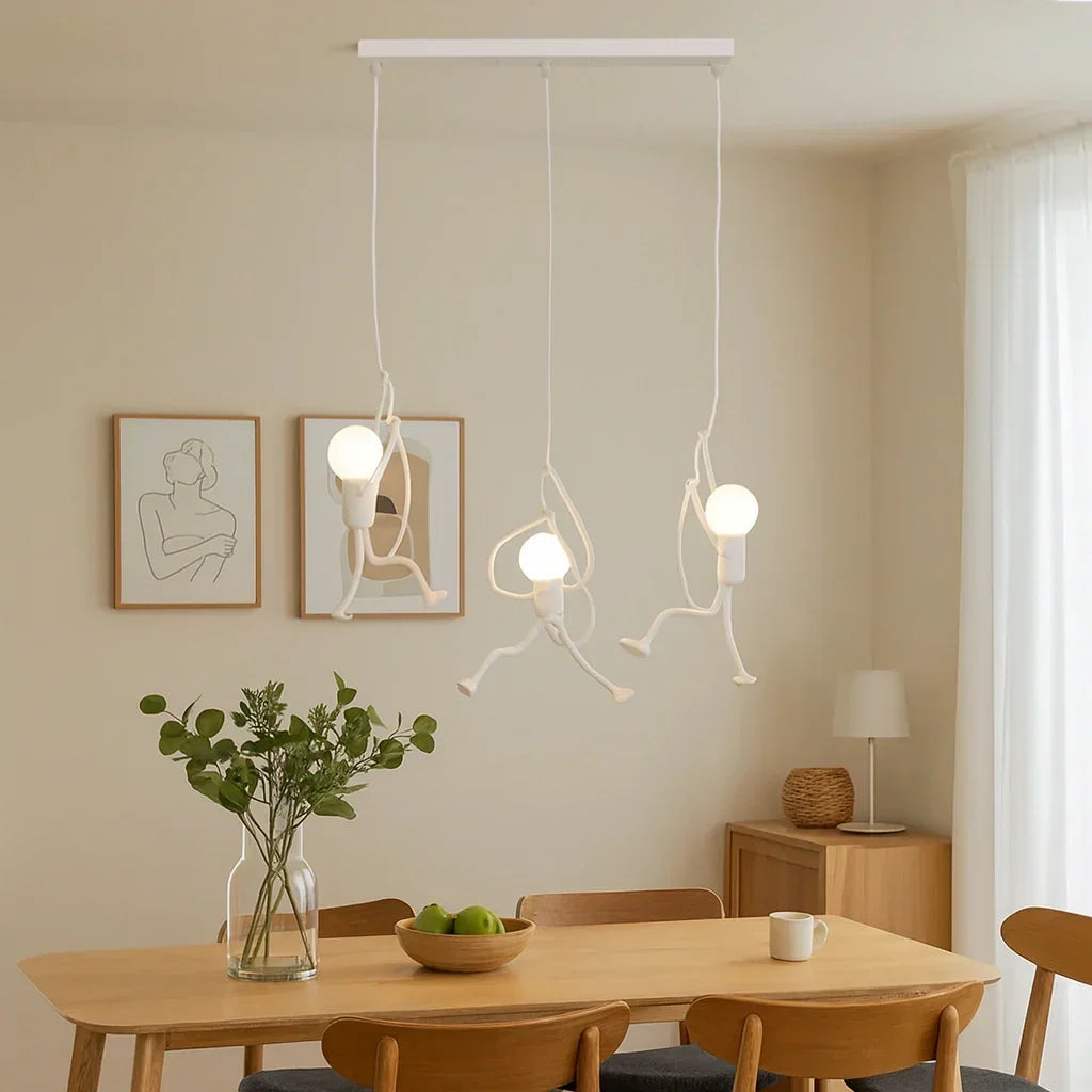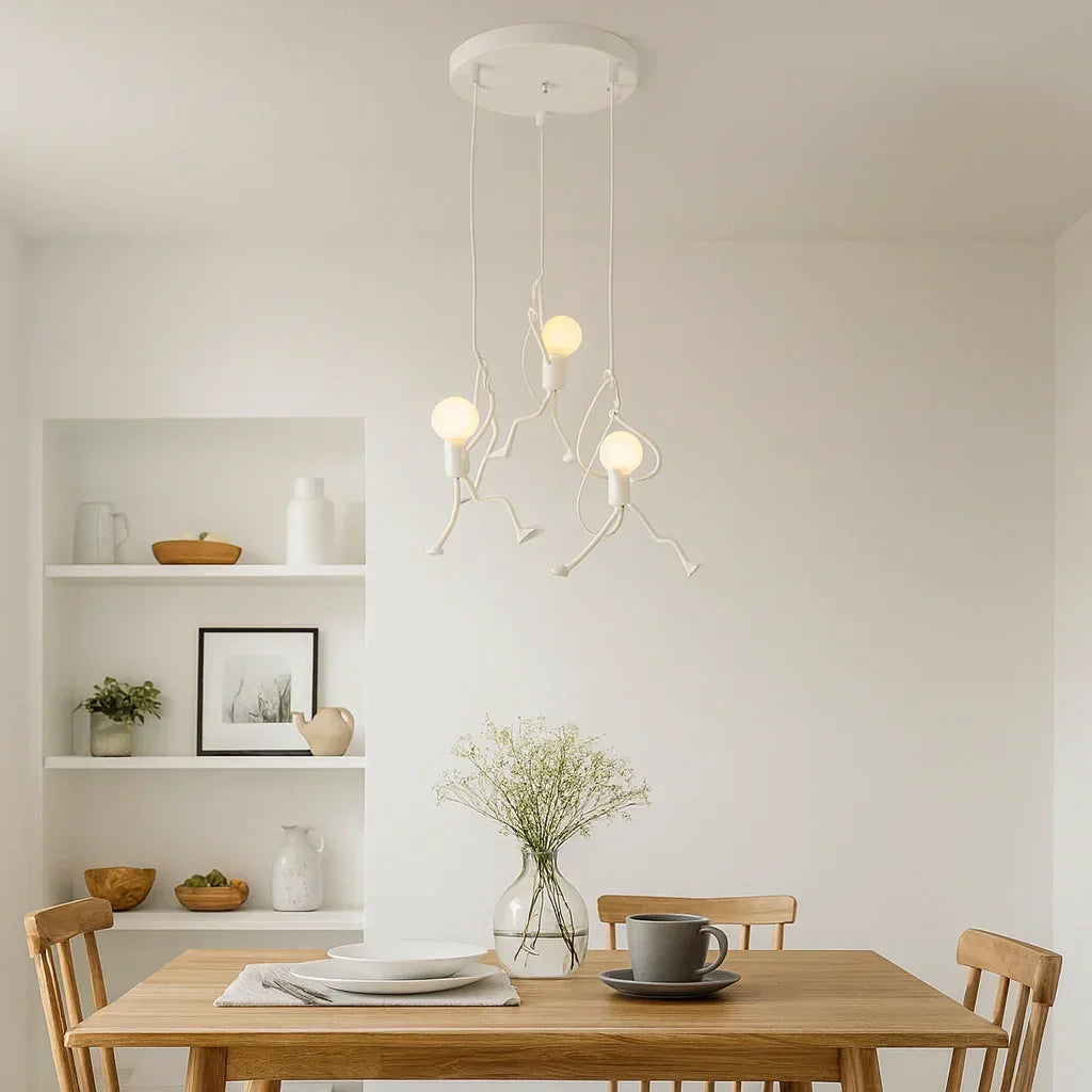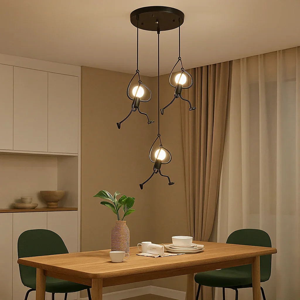 Lampada a sospensione in ferro con LED e design creativo a forma di piccolo uomo,aspetto vivido e grande senso del design,perfetta per vari spazi interni. Con attacco E27, offre un'illuminazione potente ed efficiente. Realizzata in metallo resistente, con finiture di alta qualità, è durevole e resistente alla corrosione. Stabilità eccellente grazie alla base in ferro rinforzata.