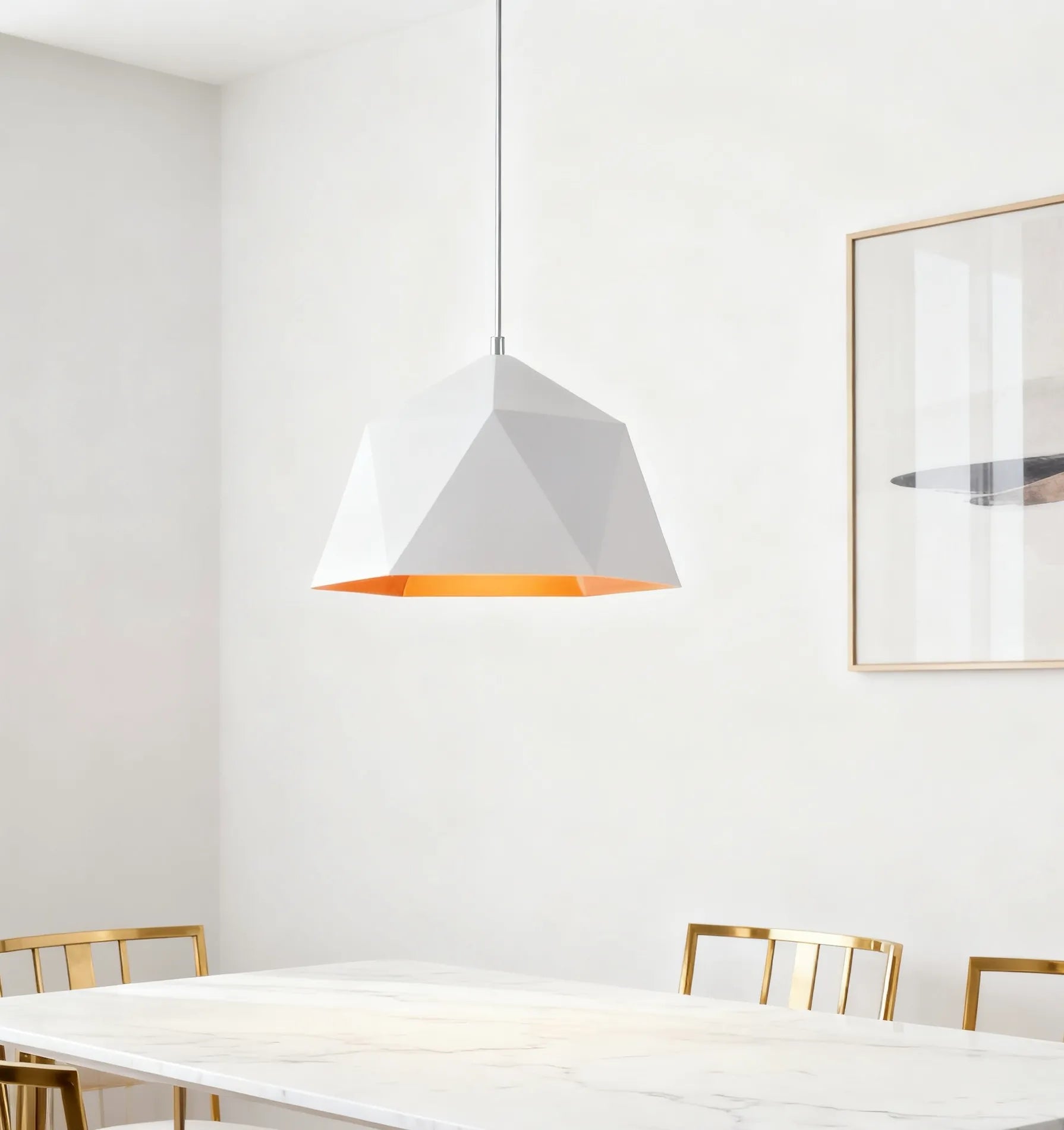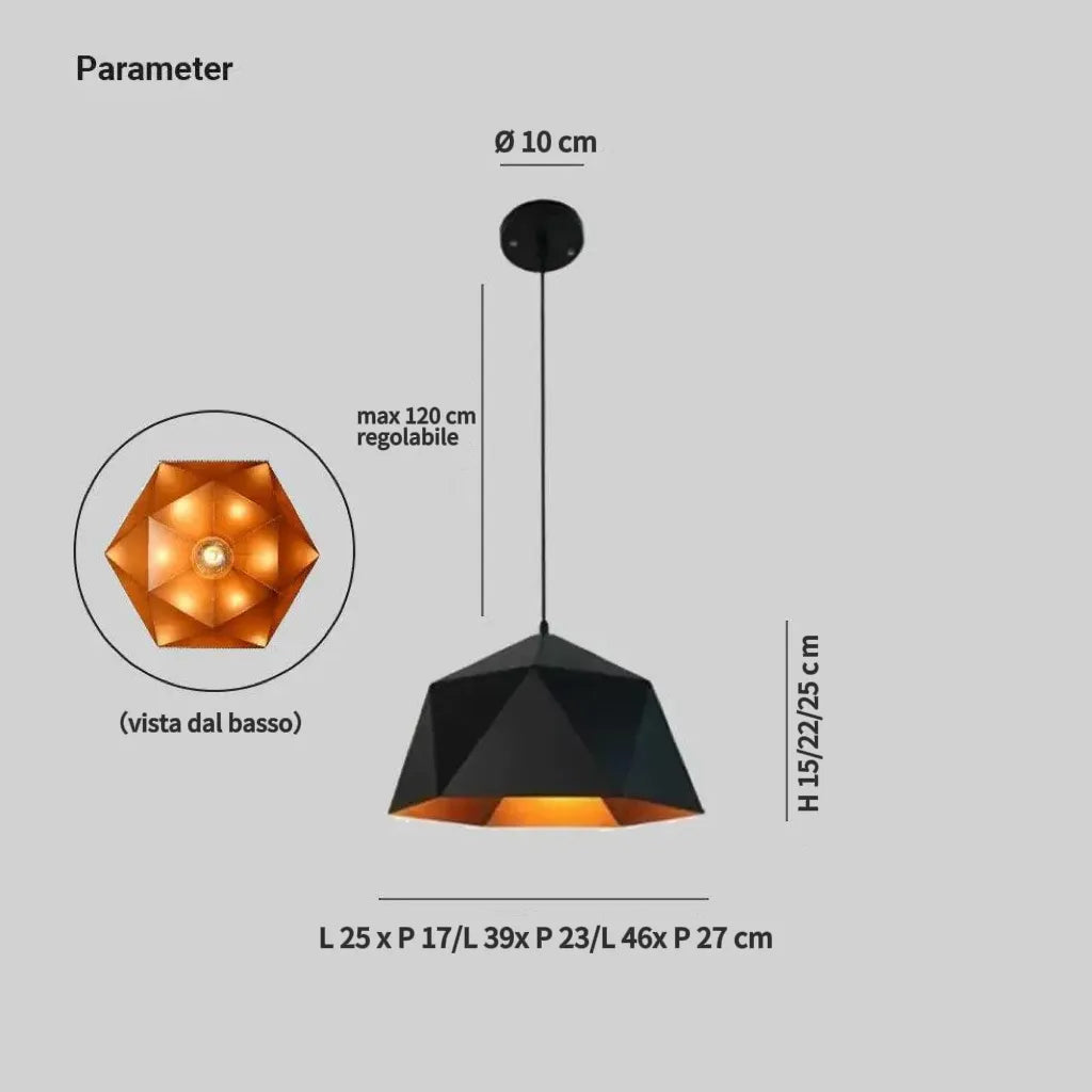 Ispirato al design poliedrica romboidale ,questa lampada a sospensione emana un'estetica moderna e geometrica, con un tocco artistico, perfetta per il tuo ristorante.Realizzata in metallo di alta qualità, è rivestita con più strati di vernice ad alta temperatura per prevenire ruggine e corrosione. L'illuminazione LED a risparmio energetico integrata non solo illumina il tuo spazio, ma riduce anche il consumo energetico, offrendo un'esperienza di illuminazione ecologica ed efficiente per il tuo ristorante.