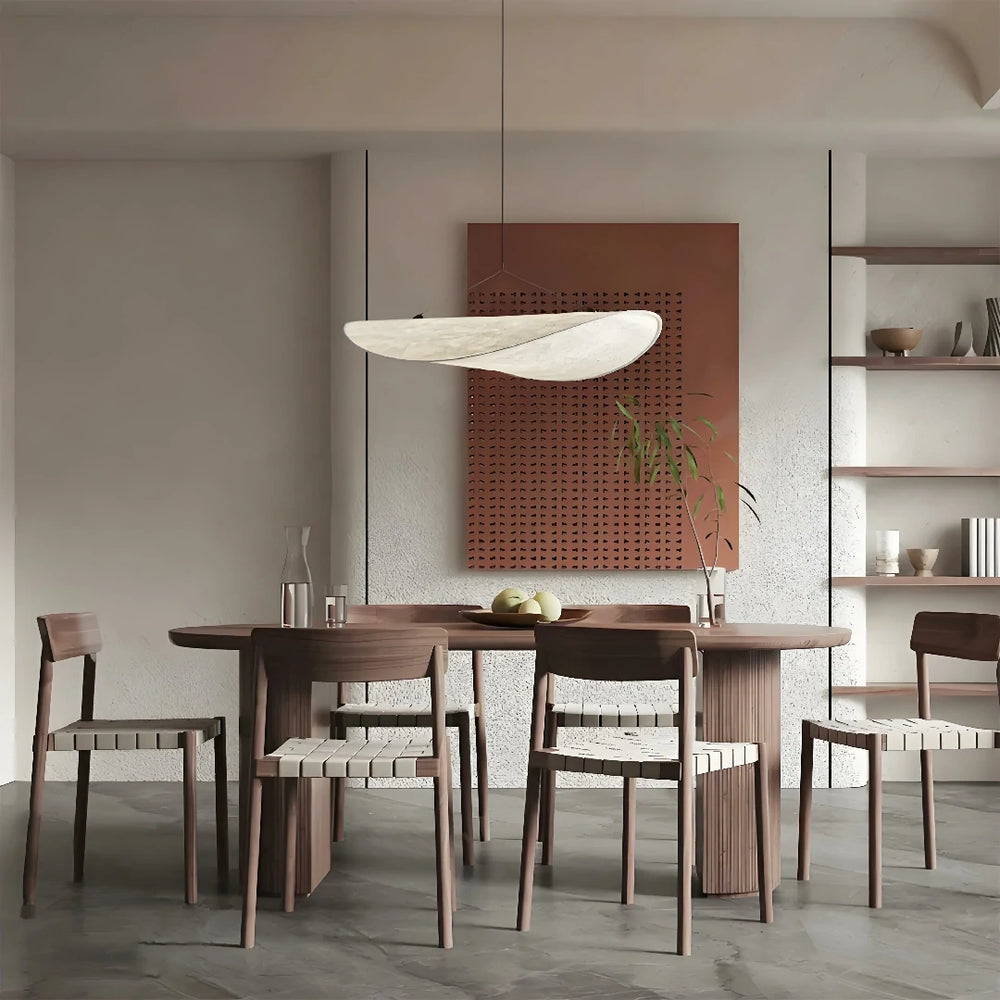 Questo modello tra i lampadari in tessuto unisce estetica contemporanea e materiali di alta qualità. Il paralume, realizzato a mano in seta selezionata, è resistente ma morbido al tatto e diffonde una illuminazione dall’effetto naturale, uniforme e delicata. Il corpo in ferro di pregio garantisce stabilità e durata nel tempo, mentre la sorgente LED ecologica assicura risparmio energetico, luce omogenea e priva di sfarfallio. Perfetto come lampadario minimalista e lampadario in stile wabi-sabi, valorizza il soggiorno con un’atmosfera calda e rilassante.