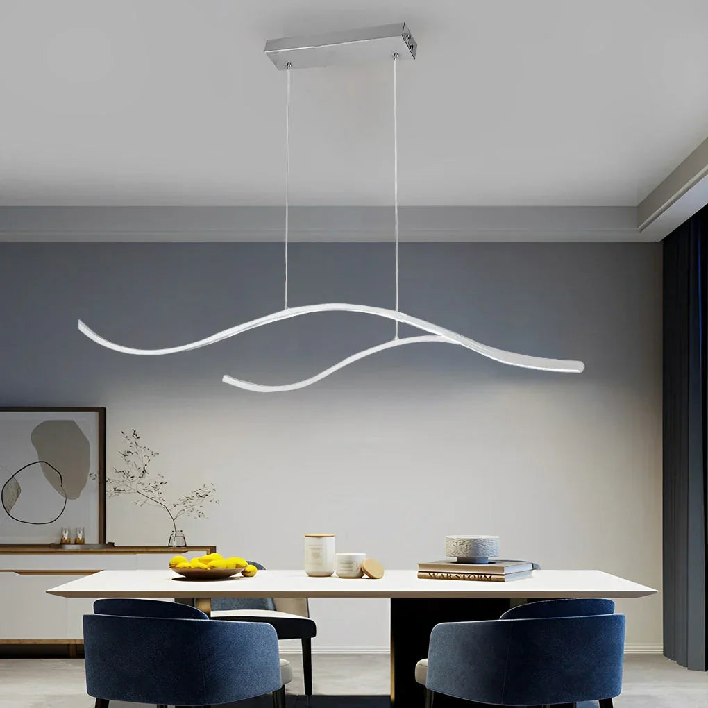 Questo lampadario per ristorante presenta un design dinamico e ondulato, che si discosta dalle forme rigide degli apparecchi di illuminazione tradizionali. Le sinuose strisce luminose, come nastri fluidi di luce e ombra, diventano il punto focale visivo dello spazio. Il corpo della lampada è realizzato in alluminio di alta qualità con una delicata finitura a forno, che conferisce all'apparecchio una texture semplice ma elegante e un aspetto raffinato e alla moda. È robusto, durevole e facile da pulire. Il paralume è realizzato in silicone ad alta trasmittanza, che consente il passaggio di una luce morbida e uniforme senza abbagliamenti o sgradevoli abbagliamenti, creando un'atmosfera luminosa calda e confortevole che esalta l'atmosfera delle esperienze culinarie.