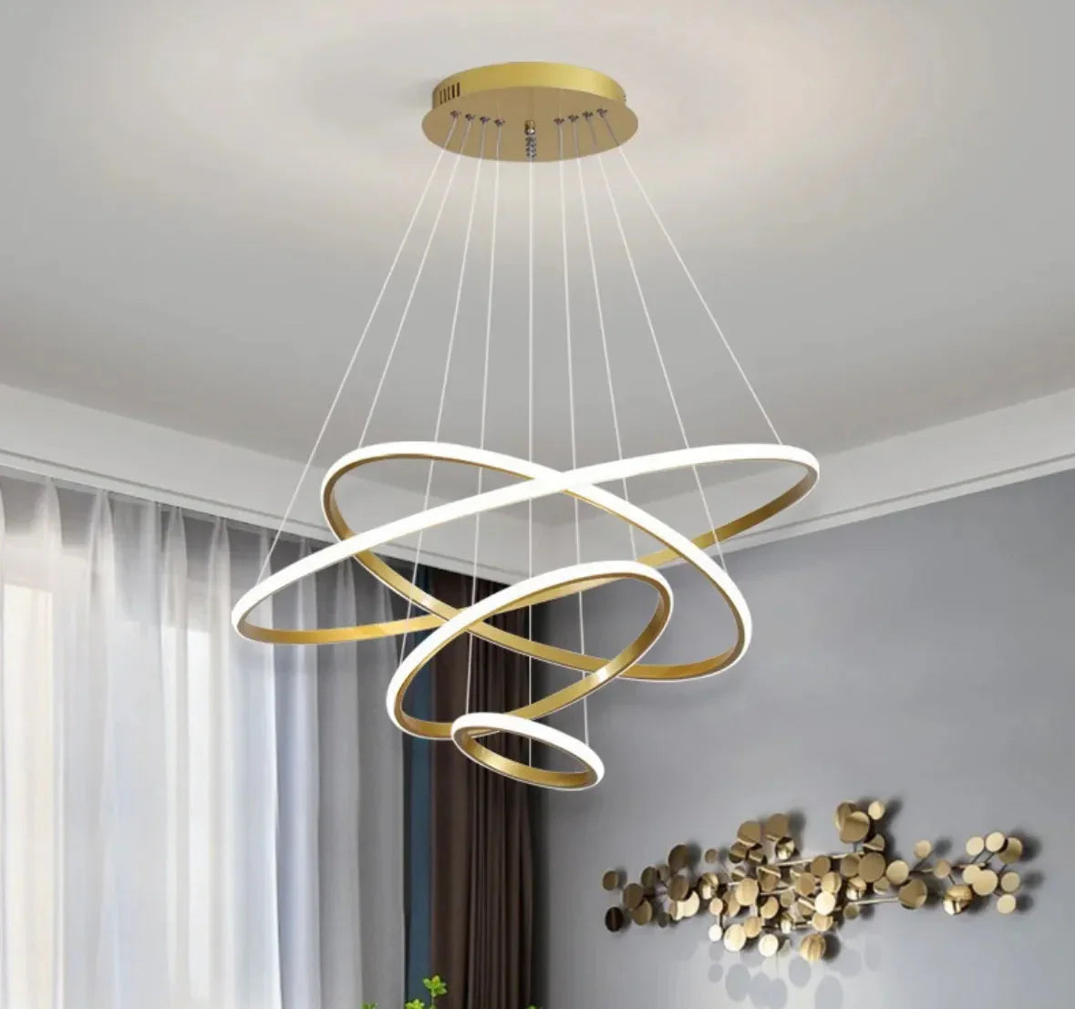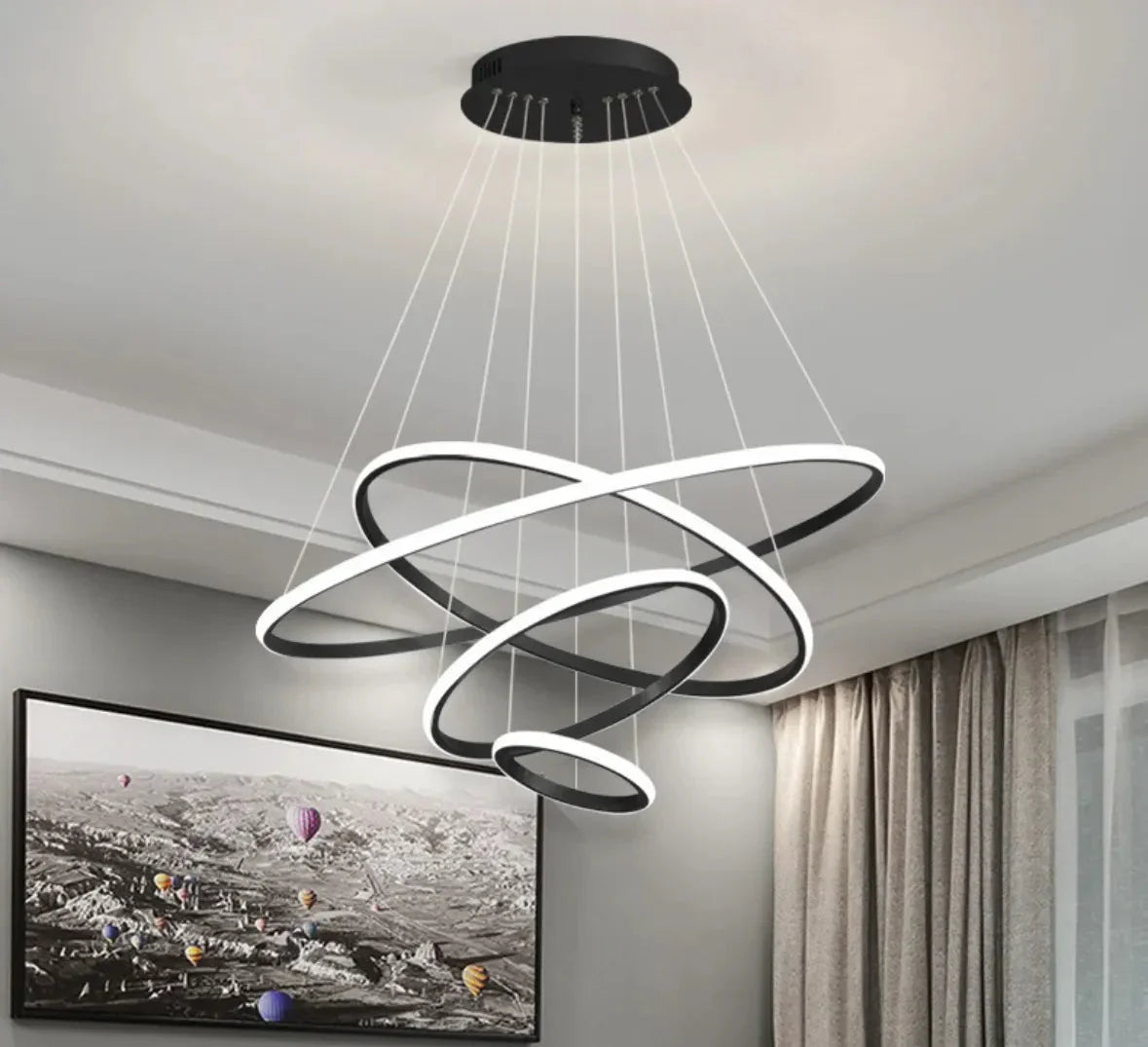 Questo lampadario a LED presenta un design multi-anello, con anelli luminosi intrecciati e sovrapposti che ricordano le orbite dei corpi celesti, aggiungendo un tocco di mistero al tuo spazio. La funzione dimmerabile consente di regolare la temperatura del colore e la luminosità in base alle tue esigenze di illuminazione. La finitura con vernice ad alta temperatura crea un aspetto robusto ed elegante, mentre le strisce in gomma morbida di alta qualità offrono una maggiore flessibilità e una trasmissione della luce più uniforme e morbida.