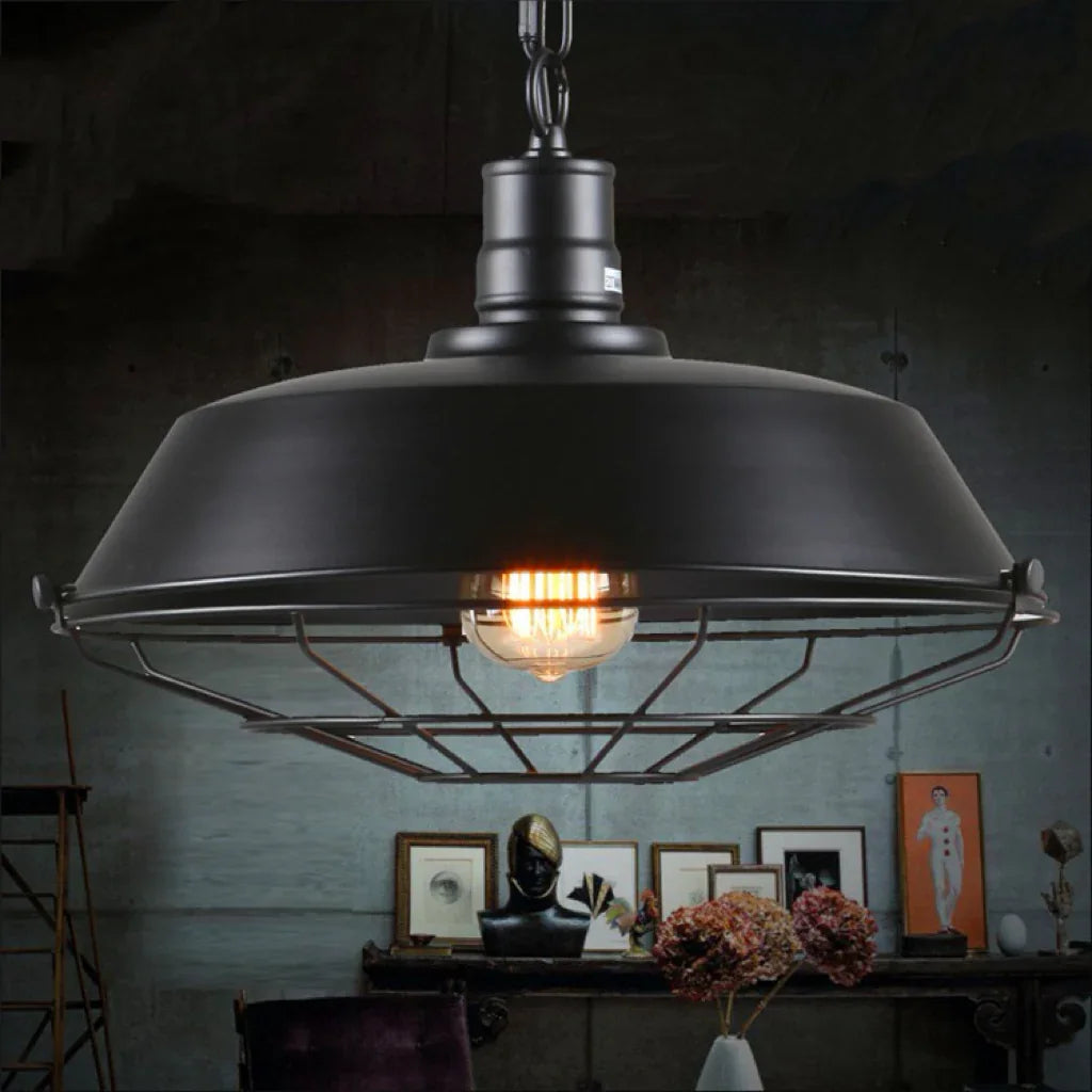 Questa lampada a sospensione è un'opera maestra dell'estetica industriale, con un materiale metallico di pesantezza industriale che esprime appieno uno stile audace e senza compromessi. Realizzata con vernice ecologica di colore ruggine, sottoposta a 36 fasi di lavorazione tra cui sgrassaggio, antiruggine, spruzzatura, cottura e smaltatura, ogni lampada appare come un'opera d'arte industriale forgiata dal tempo. Il paralume in filo di ferro utilizza una tecnologia avanzata di saldatura completa, delineando una forma industriale solida e affascinante, con una tensione artistica metallica che si fa sentire. Ogni volta che la luce si accende, sembra raccontare l'estetica dura e il raffinato artigianato dell'era industriale.