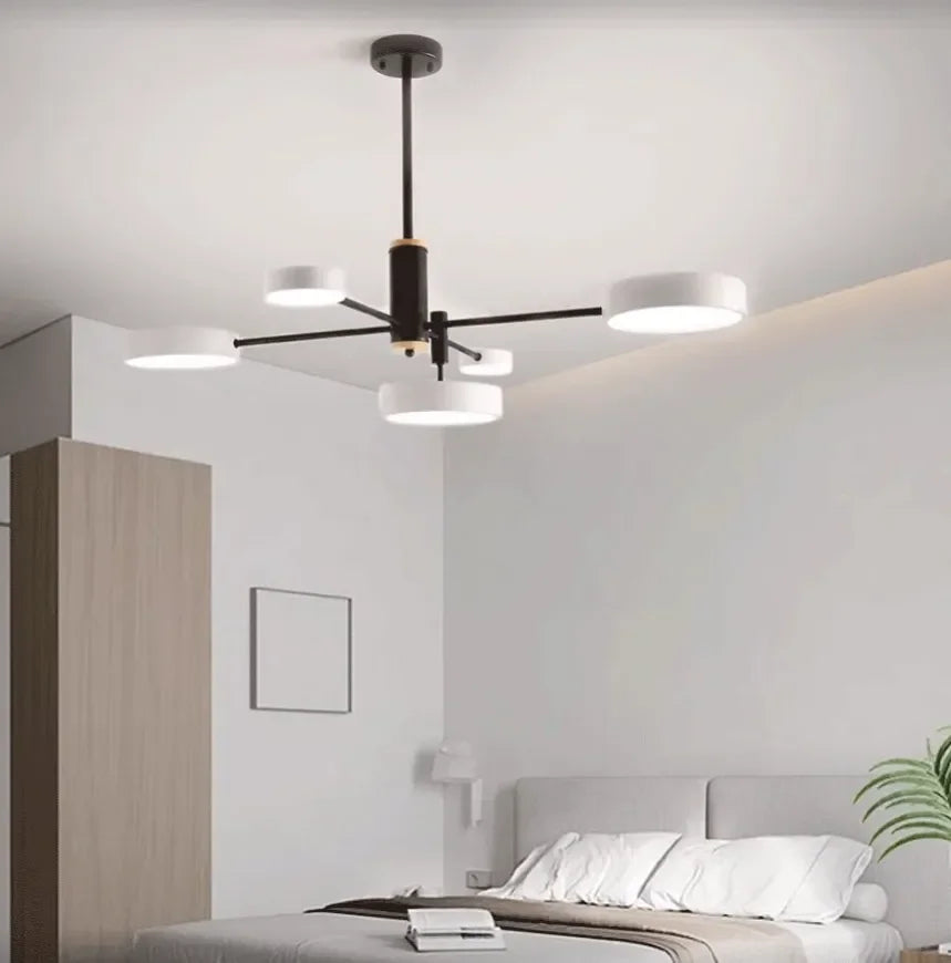 Questa plafoniera a LED adotta un design a testa multipla: la struttura in ferro di colore nero si estende verso l’esterno come linee artistiche, creando un ritmo visivo ricco di livelli e rompendo la monotonia delle lampade tradizionali. Sono disponibili due versioni, dimmerabile e con luce a tre tonalità, per offrire soluzioni di illuminazione flessibili in base alle diverse esigenze. Le parti chiave del corpo lampada sono arricchite da inserti in legno massello naturale, levigati e verniciati più volte, collegando la solidità del ferro con la naturalezza calda del legno. Inietta una texture fresca ed elegante nello spazio.