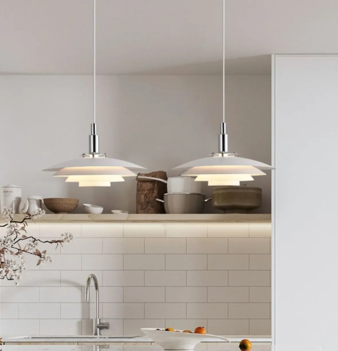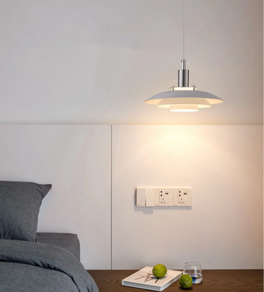 Questa lampada a sospensione si distingue per il design a più livelli di dischi, un elemento centrale che non solo presenta un'estetica raffinata, ma realizza anche un controllo abile del riverbero. I dischi sovrapposti offrono angolazioni che proteggono gli occhi, diffondendo la luce in modo morbido e evitando l'abbagliamento diretto. Il corpo della lampada è realizzato con una lavorazione di verniciatura a polvere su ferro di alta qualità, con componenti in acciaio inox spazzolato, creando un effetto di livelli distinti e un'eleganza superiore. Inoltre, dispone di una luce a tre temperature di colore per adattarsi a diversi ambienti. Senza sfarfallio video, è efficiente dal punto di vista energetico e protegge la vista, che unisce arte, funzionalità e un design pensato per il benessere.