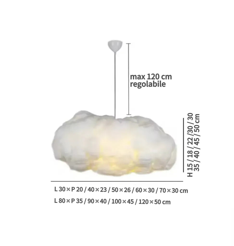 Questo lampadario adotta un design ispirato alle nuvole, con una forma realistica e vivace che sembra portare le soffici nuvole del cielo all’interno, infondendo nello spazio un’atmosfera pura e onirica. È realizzato in cotone naturale sgrassato, dalla consistenza uniforme e delicata, che non solo restituisce la morbidezza e la vaporosità delle nuvole, ma rende anche la luce soffusa e gentile quando le attraversa, come i raggi del mattino che filtrano attraverso il cielo. Il materiale, leggero ed ecologico, è anche resistente e durevole: conserva la sensazione di leggerezza tipica delle nuvole, garantendo al tempo stesso praticità e lunga durata d’uso.