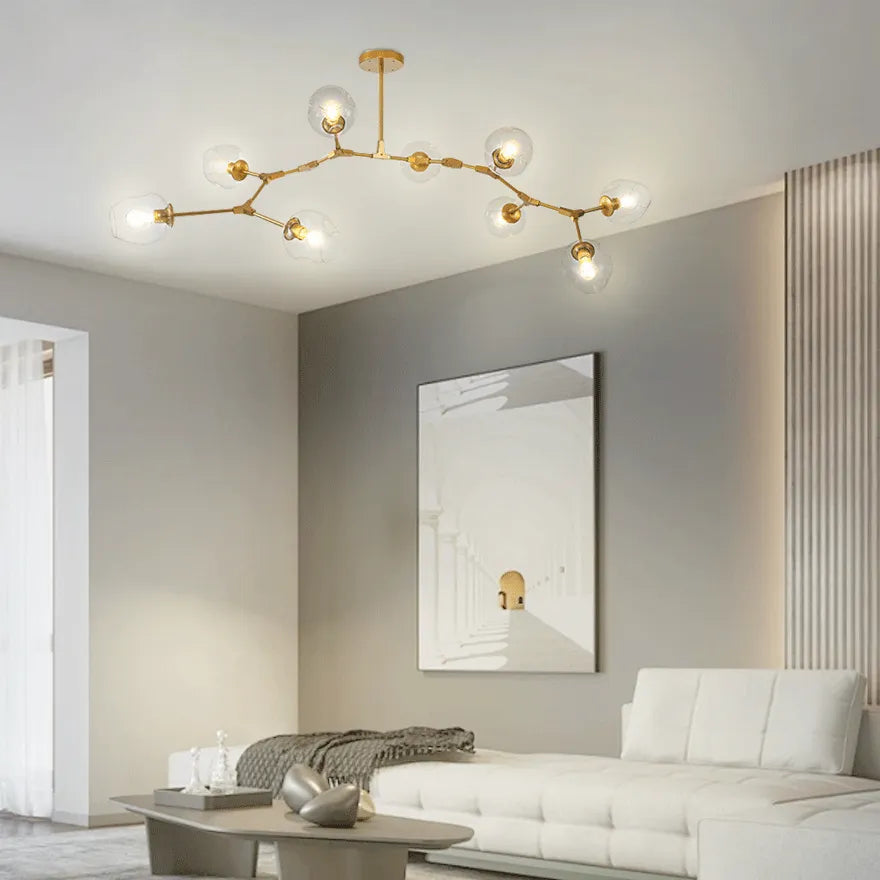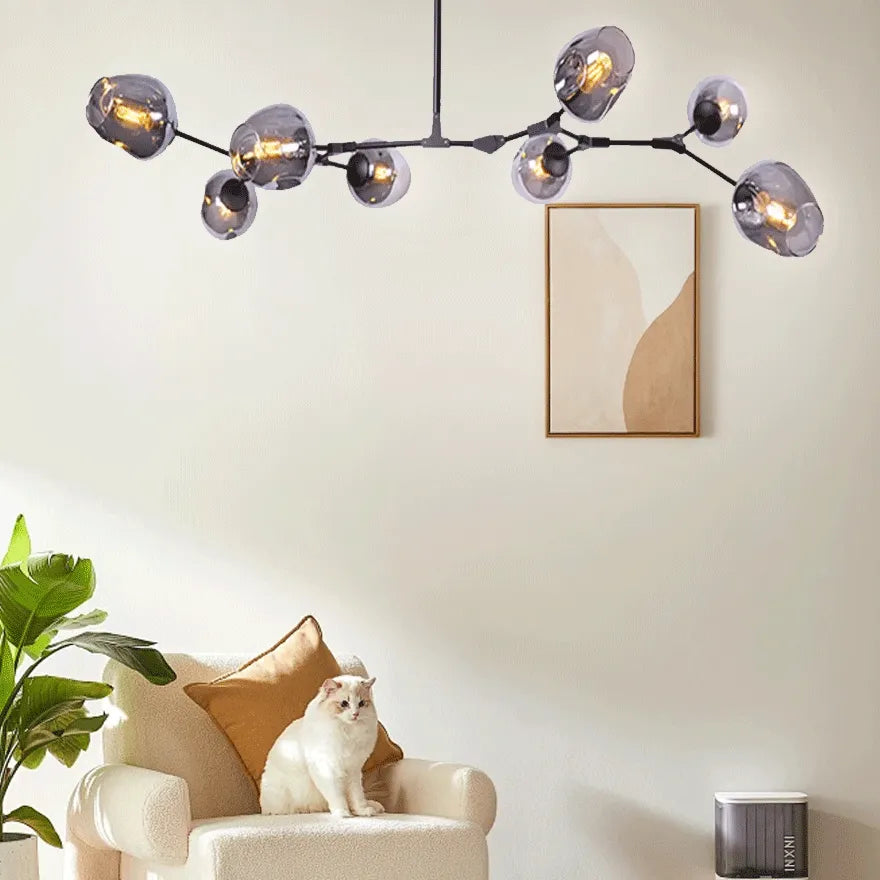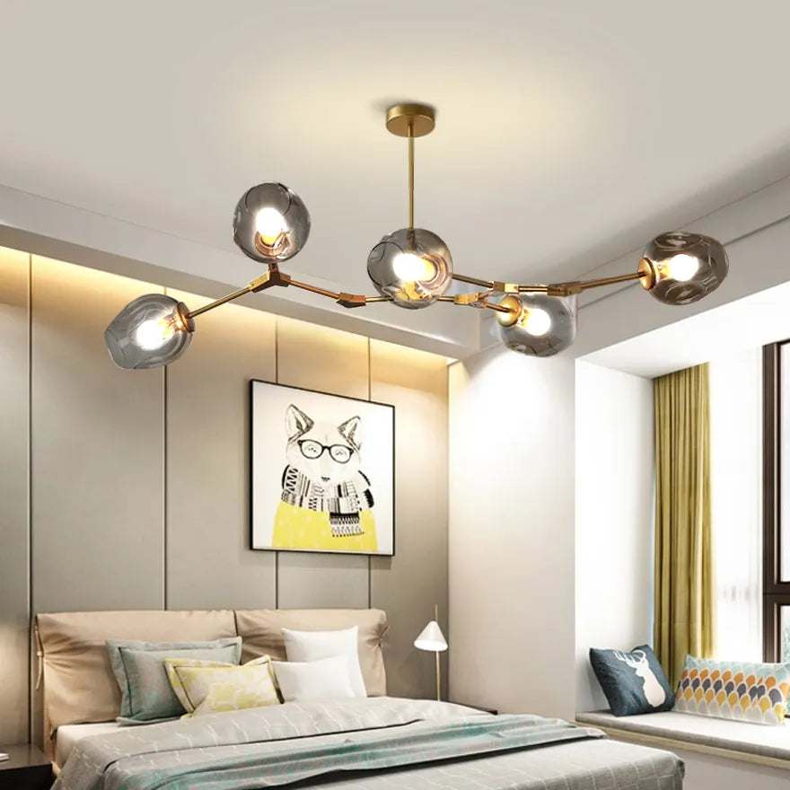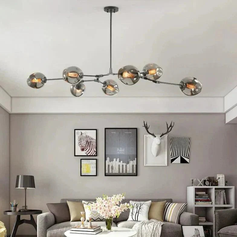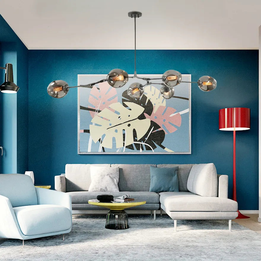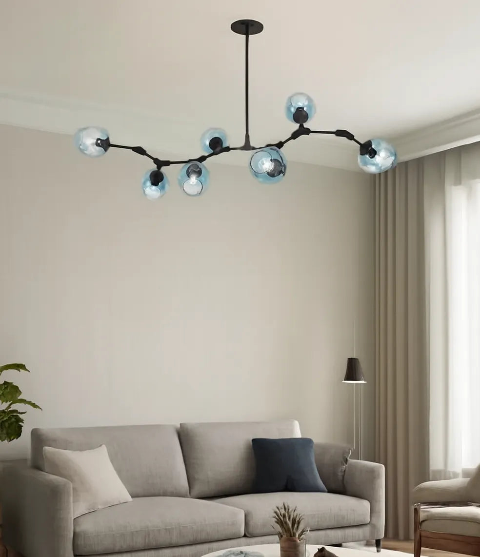 Lampadario sospeso moderno in vetro con design molecolare, ideale per il soggiorno.Il nodo rotante regolabile permette di personalizzare la forma. Il paralume in vetro soffiato a mano offre una luce morbida e protettiva per gli occhi. La struttura in metallo verniciato a forno è resistente alla corrosione e durevole. Portalampada E27 resistente alle alte temperature, lunga durata, sicuro e stabile da usare.