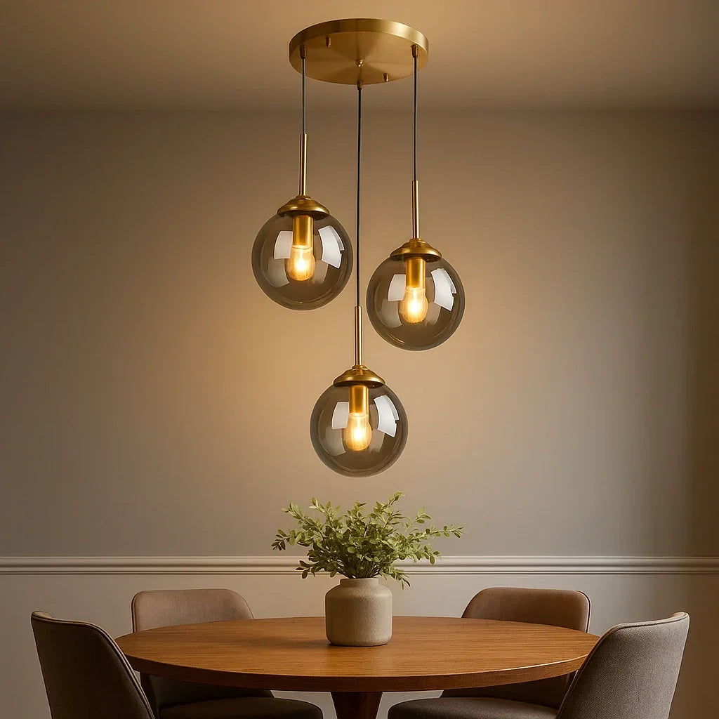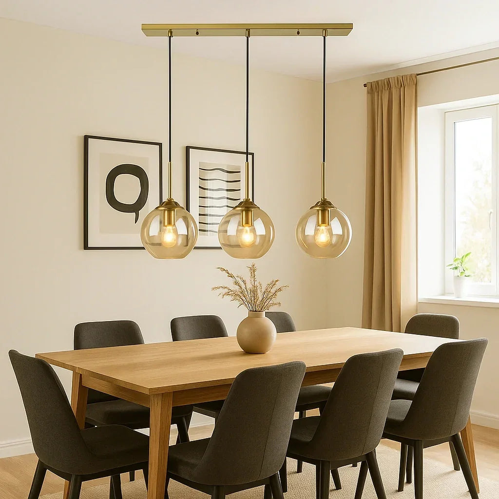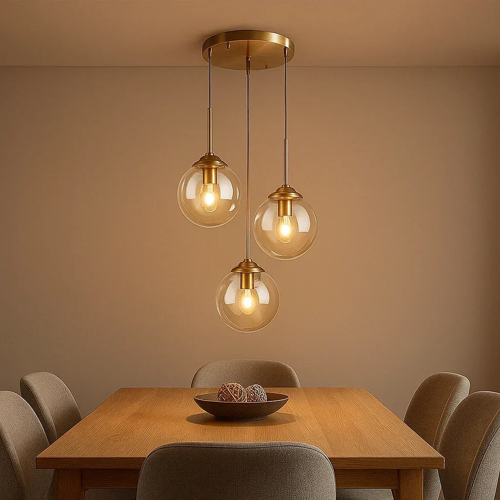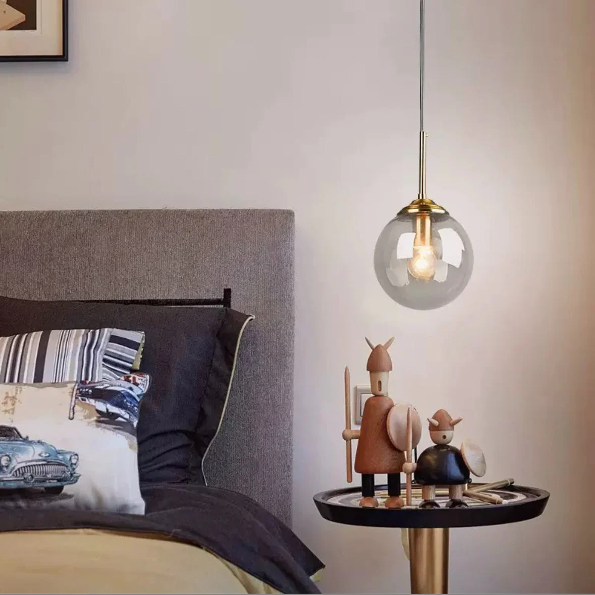 Lampade a sospensione in vetro trasparente stile nordico minimalista. Paralume in vetro trasparente che diffonde una luce uniforme e raffinata. Struttura in metallo con finitura galvanica resistente a corrosione e ruggine. Crea un'esperienza di illuminazione confortevole e appagante perfetto per il tuo soggiorno o la tua camera da letto.