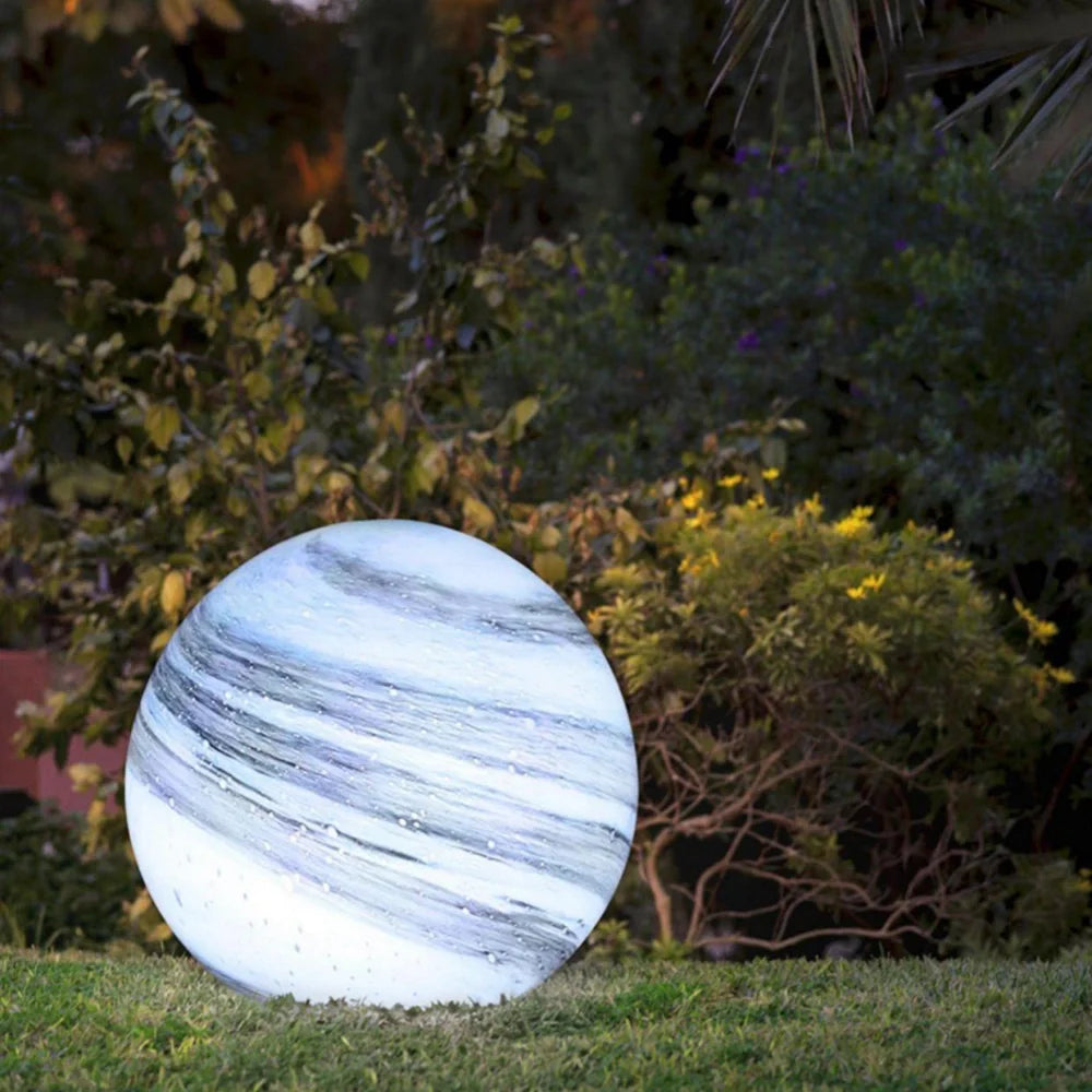 La Moon Lamp è una lampada da giardino sferica progettata per valorizzare gli spazi esterni. Realizzata con un corpo in vetro spesso e una robusta base in alluminio, integra un'efficiente illuminazione solare a LED. La sua finitura superficiale effetto seta e il design con texture planetaria le conferiscono uno stile decorativo distintivo. Progettata per uso esterno e giardini, offre durata e affidabilità con certificazione CE.