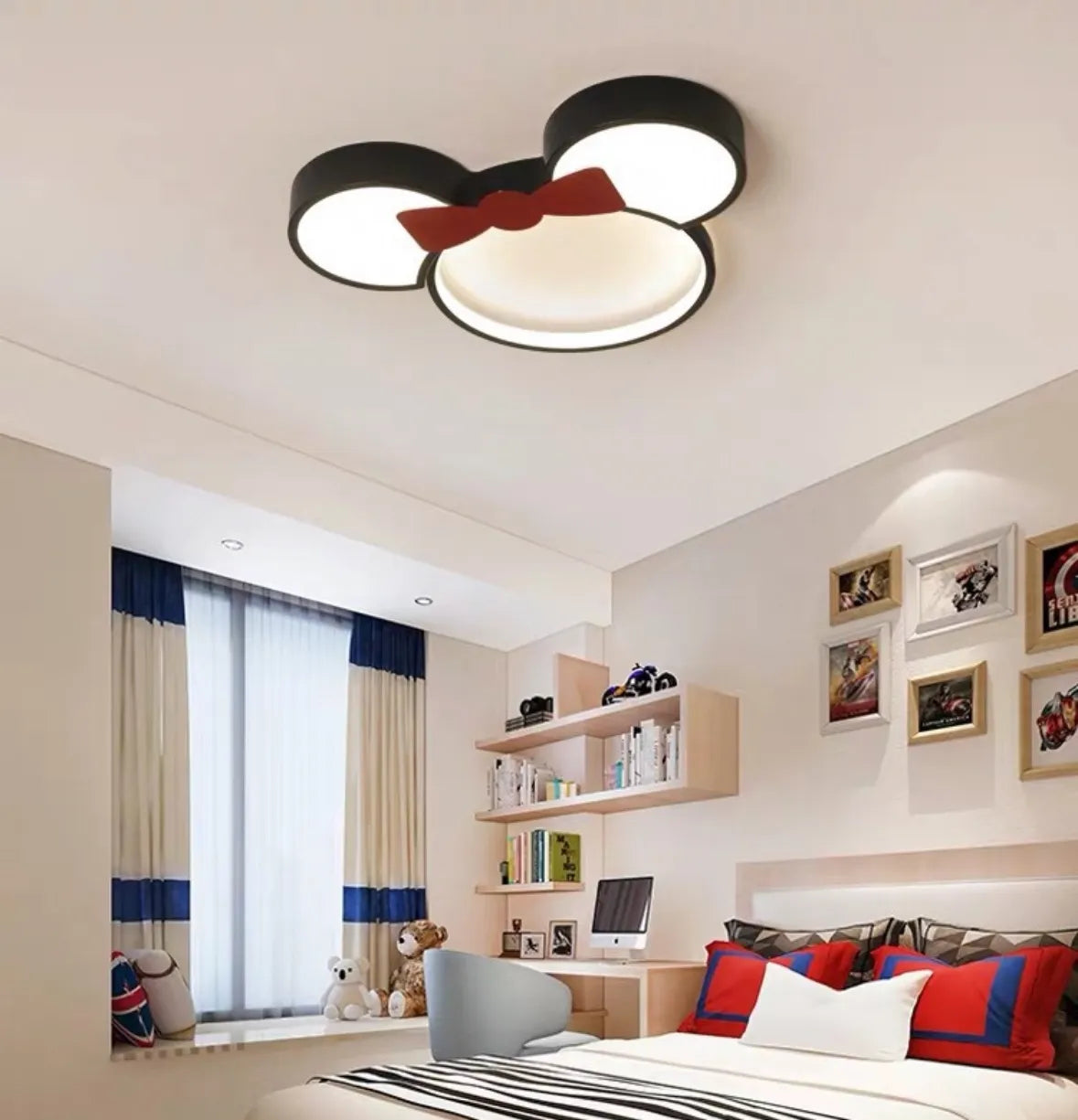 Questa lampada per cameretta è ispirata agli animali cartoon e presenta una forma rotonda e adorabile con tre cerchi, arricchita da un simpatico fiocco rosso. I toni bianco e nero sono semplici ma pieni di fantasia, creando subito un'atmosfera vivace nella stanza, diventando un punto focale accattivante nel mondo dei bambini.Il corpo della lampada è realizzato in ferro verniciato a polvere, trattato con un processo di fissaggio del colore per prevenire il distacco della vernice e la scoloritura. Il paralume è in acrilico ad alta trasparenza, resistente al calore e con una luce morbida e non abbagliante, proteggendo gli occhi dei bambini.La lampada adotta un design di illuminazione laterale, che diffonde la luce in modo uniforme, offrendo una luce diffusa confortevole per la cameretta e evitando il problema del riverbero causato dalla luce diretta. La forma semplice si adatta facilmente a diversi stili di arredamento per camerette, come quello cartoon, nordico, e si integra perfettamente nel piccolo mondo di fantasia dei bambini.