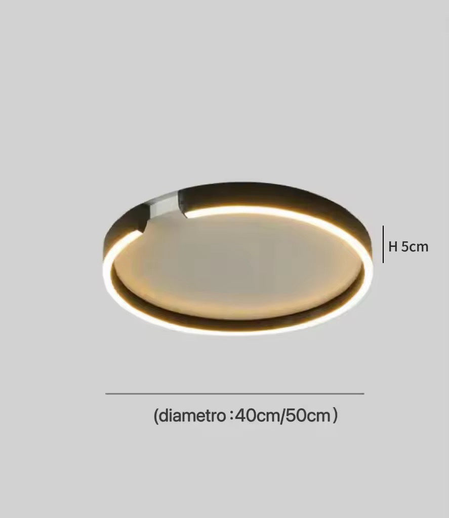 Questa plafoniera LED da corridoio, con il suo esclusivo design ad anello, ridefinisce l’estetica dell’illuminazione degli spazi. Realizzata con una cornice in alluminio di alta qualità, semplice ed elegante, è resistente alla corrosione e mantiene la sua raffinatezza anche dopo un uso prolungato. L’innovativa striscia luminosa circolare diffonde la luce in modo morbido e uniforme, come un flusso d’acqua, offrendo un’illuminazione abbondante e al tempo stesso un’esperienza visiva di livello artistico. Ogni passaggio diventa così un incontro con un “anello d’arte”, aggiungendo profondità e dimensione artistica al corridoio.
